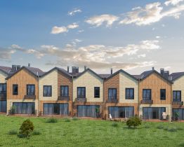 Экстерьер таунхауса выполнен с использованием современных природных материалов.