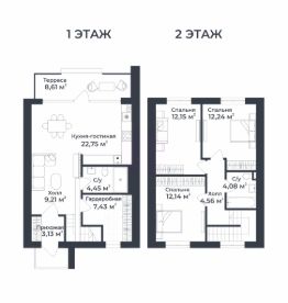 Продается двухэтажный таунхаус площадью 94,72 кв.м., расположенный в живописном городе Доброграде по адресу: ул. Удачная, дом 22, корпус 6.