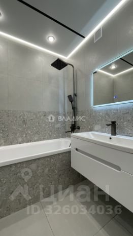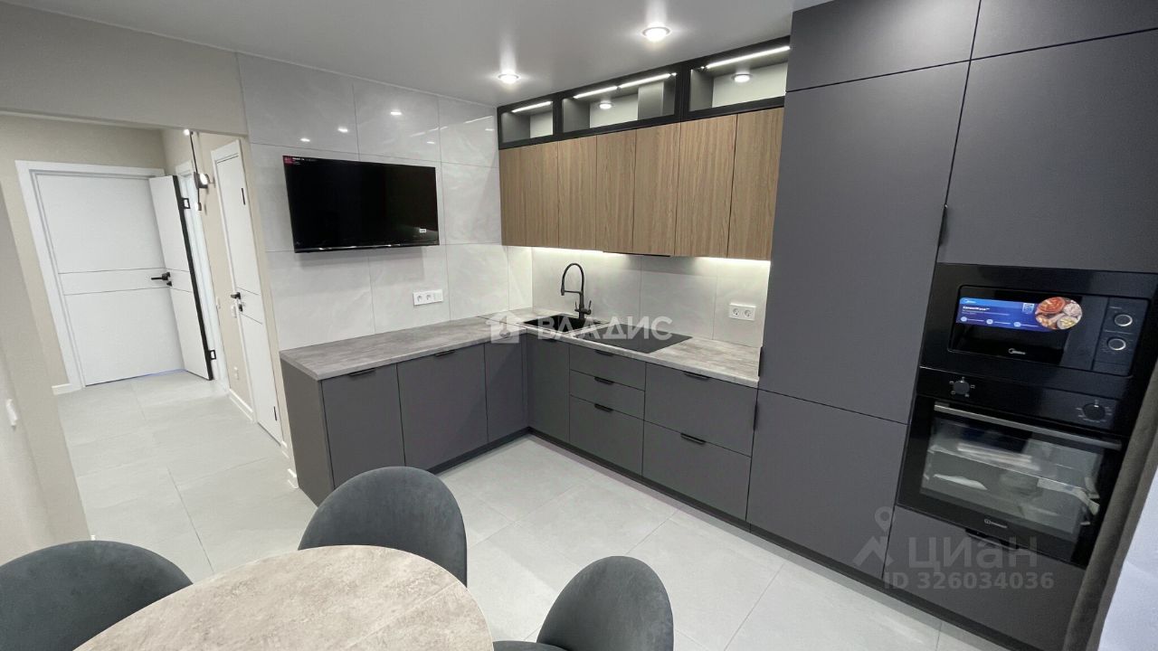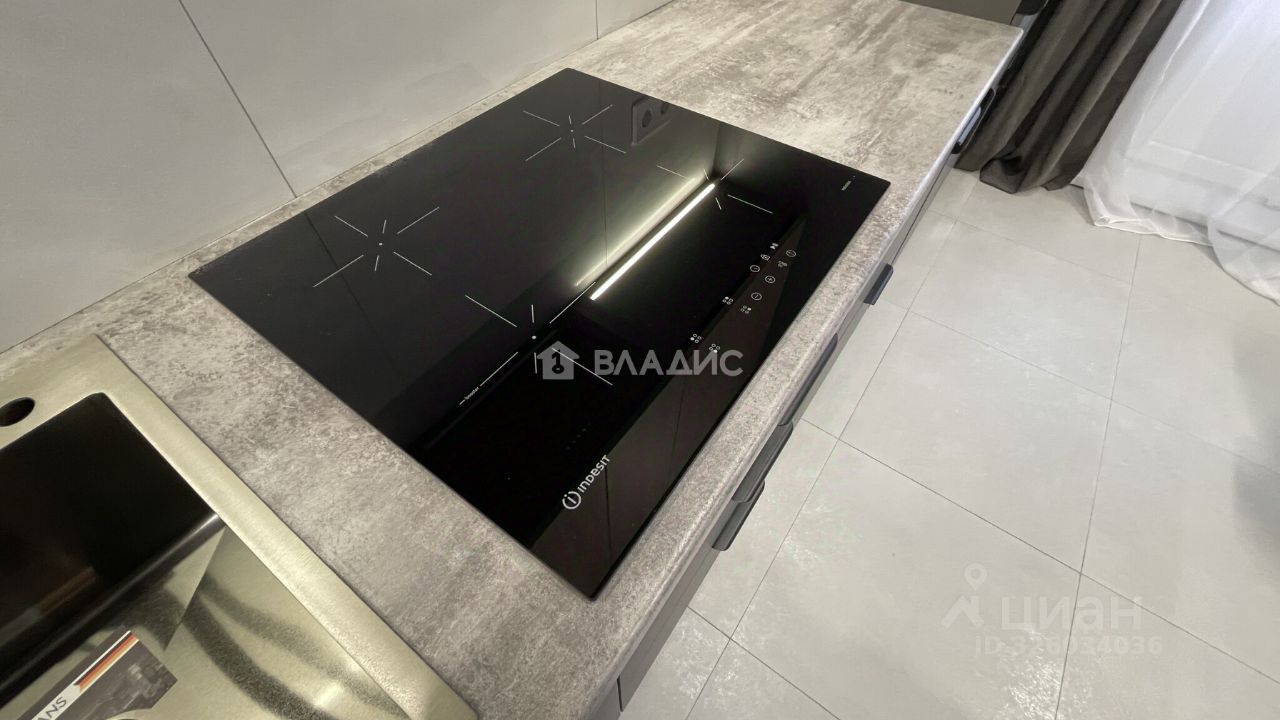 В квартире выполнен качественный современный ремонт, установлен новый кухонный гарнитур с встроенной бытовой техникой (варочная панель, духовой шкаф, посудомоечная машина, холодильник, вытяжка), санузел раздельный в современном кафеле, гардеробная комната, вся сантехника новая, материал напольного покрытия - керамогранит/ламинат, потолки - натяжные с комбинированным освещением.