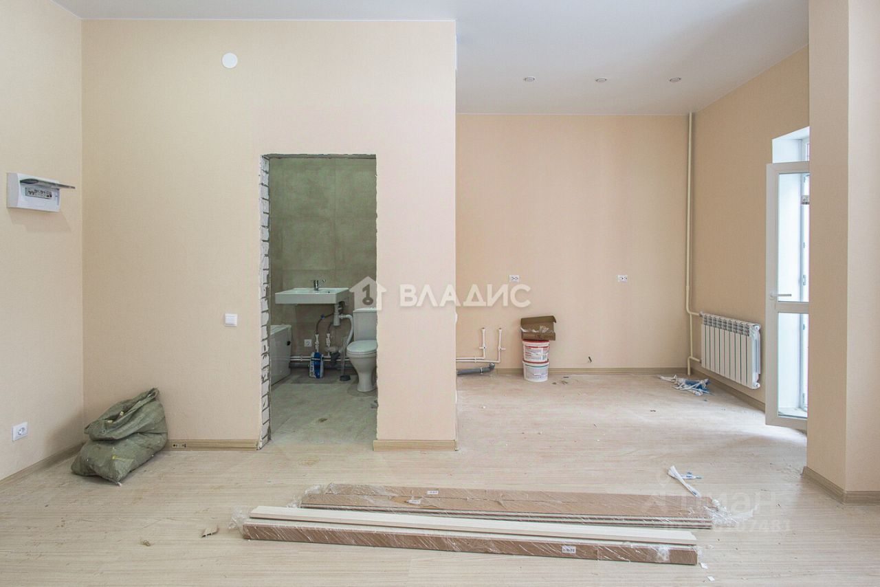 Продается просторная квартира-студия с двумя окнами (широкая). В квартире выполнен качественный ремонт. Высокий первый этаж. Есть большая просторная гардеробная. Кухня и комната зонированы и каждая имеет свое окно. Застекленная лоджия. Высокие пололки.