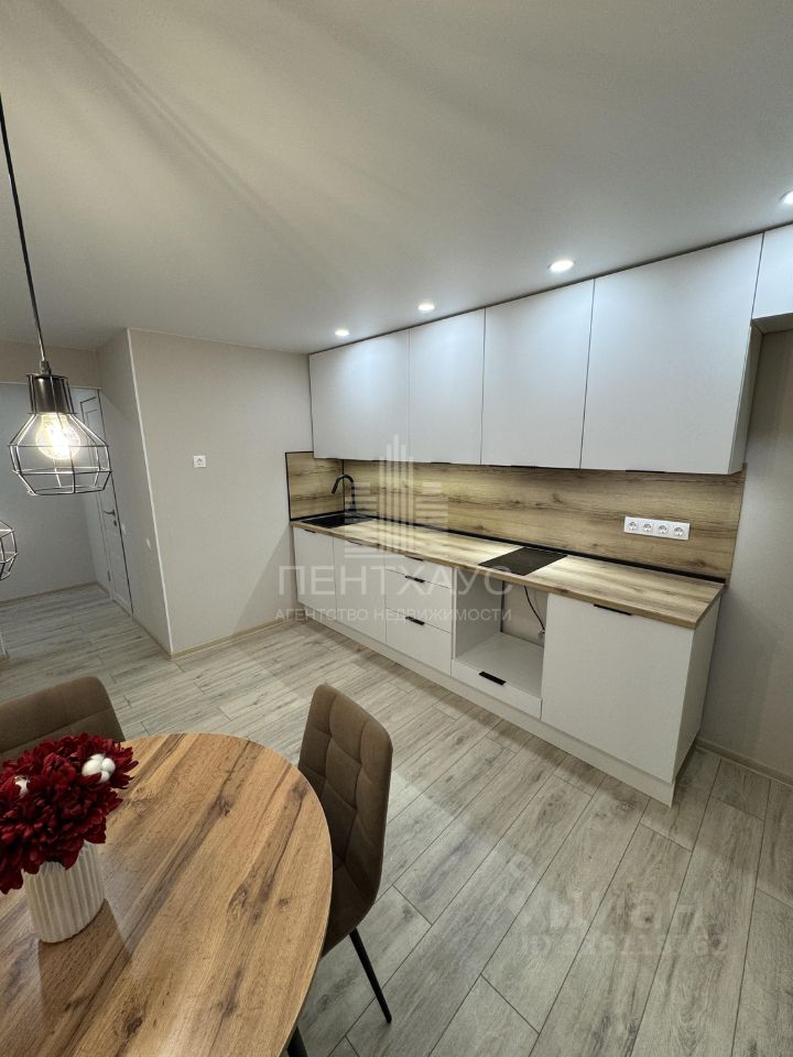 Просторная кухня, новый кухонный гарнитур, варочная панель. Предусмотрена возможность установки посудомоечной машины.