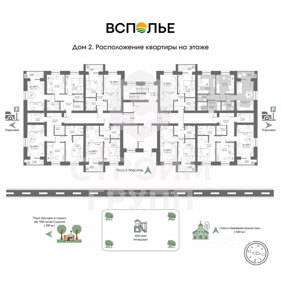 Новый проект от Строим Групп - жилой комплекс Всполье в самом известном туристическом городе России! ЖК Всполье в Суздале это три полностью кирпичных дома, расположенных рядом с одноименной улицей. Отличительной особенностью этого жилого комплекса является присущее компании Строим Групп внимание к деталям. Так, территория комплекса будет огорожена для спокойствия и безопасности жильцов, а на территории помимо самих домов будет размещена просторная парковка и детская площадка с резиновым покрытием. На территории, как и в подъездах, проектом предусмотрено круглосуточное видеонаблюдение. Но самое главное - все квартиры в ЖК Всполье будут сданы с отделкой от застройщика, стоимость которой уже входит в цену квартиры! А купить квартиру в ЖК Всполье можно как в ипотеку с применением любых субсидий, так и за наличный расчет всего за 1 день