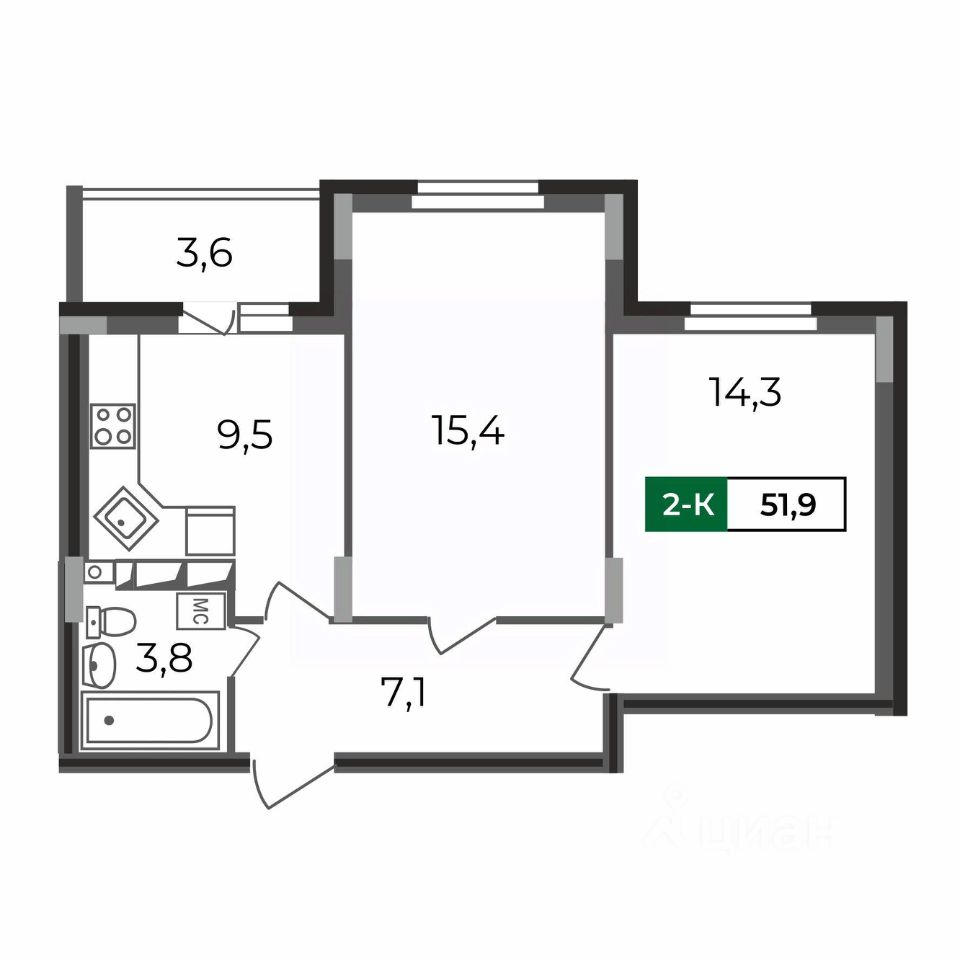Общая площадь51,9 м²
