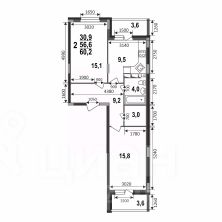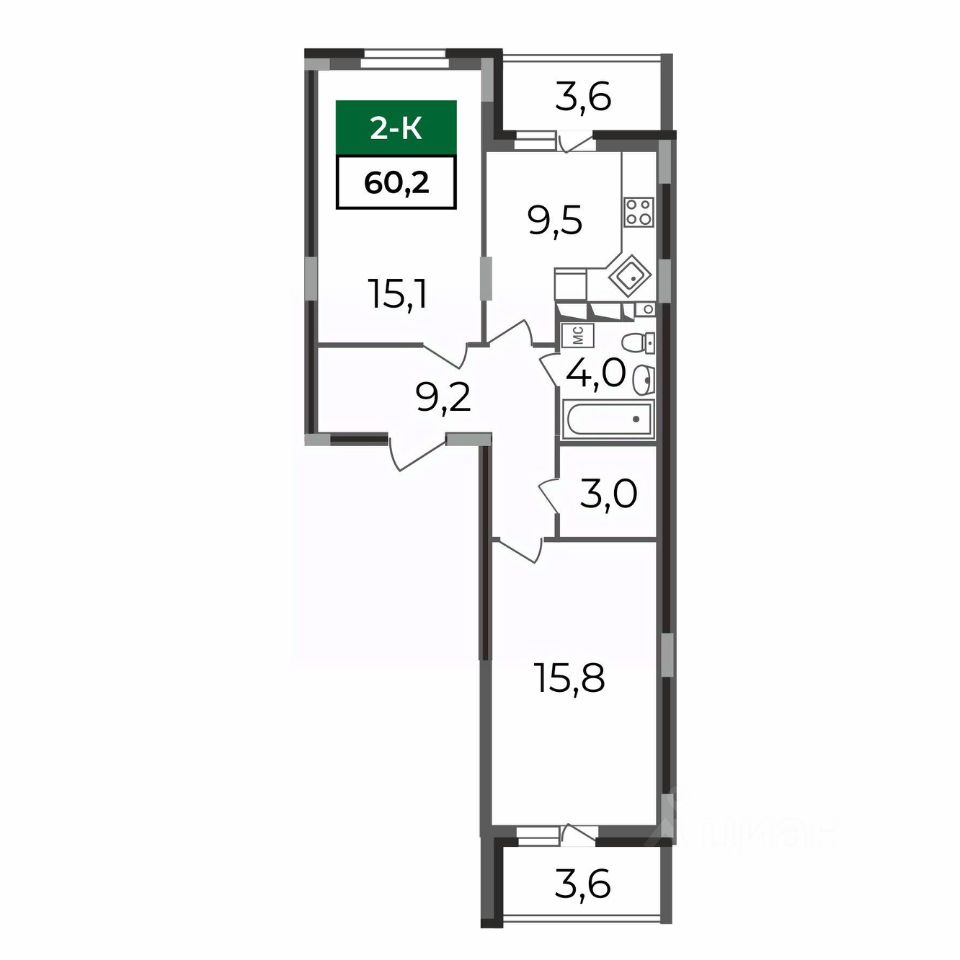 Двухкомнатная квартира-распашонка 60,2 кв.м в монолитном доме от застройщика — ЖК Сталинградский бульвар 7.