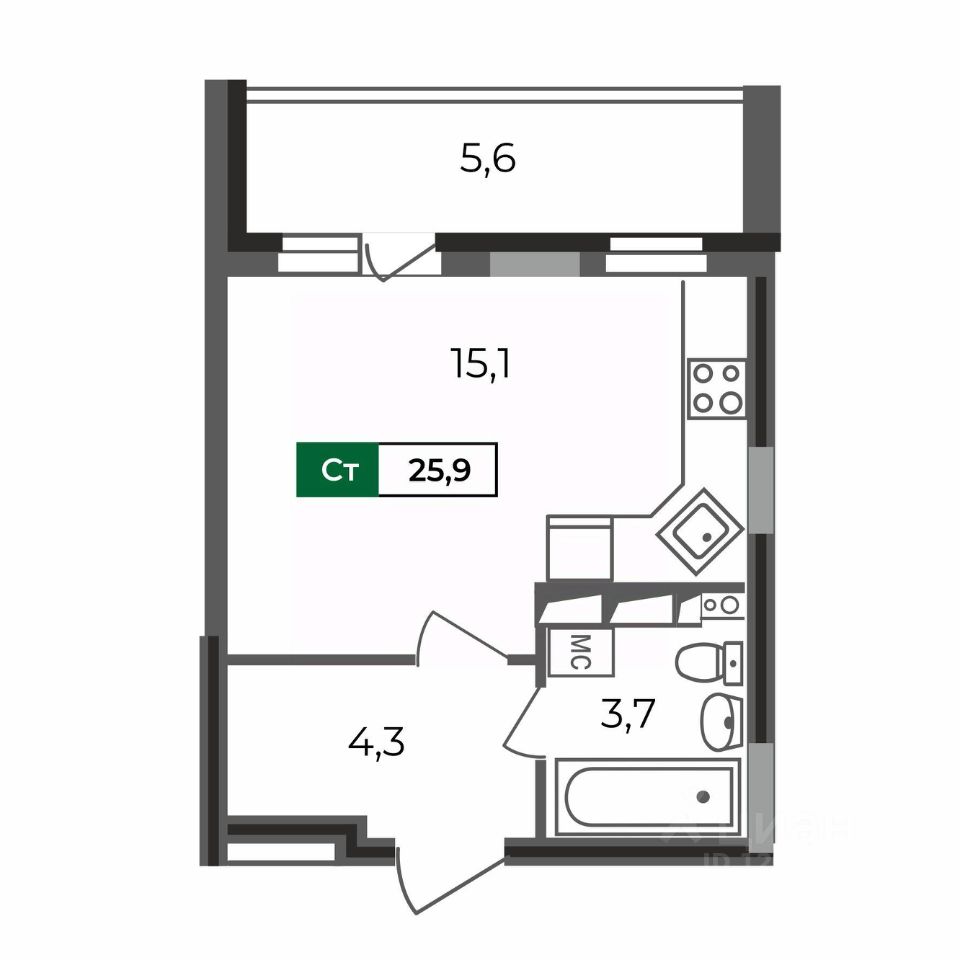 Общая площадь25,9 м²