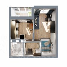 Классическая однушка с совмещенным санузлом, функциональной прихожей, небольшой кухней с выходом на лоджию и большой жилой комнатой, в которой при желании можно организовать гардеробную (предусмотрена ниша).