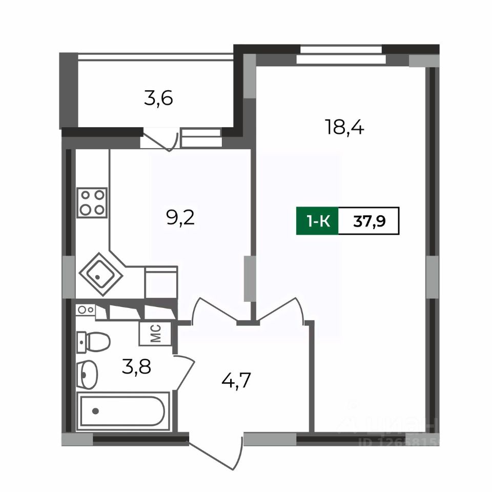 Общая площадь37,9 м²
