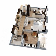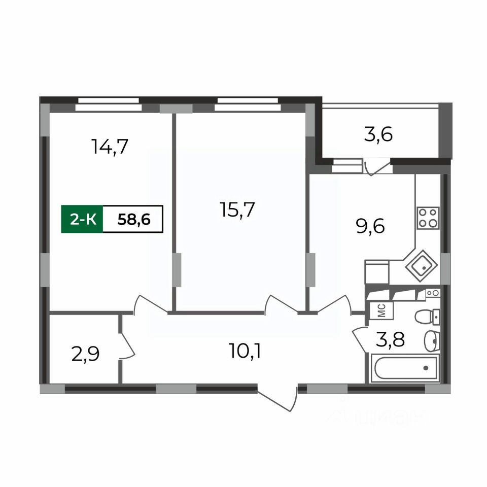 Плюсы: квадратная кухня почти 10 кв.м с выходом на лоджию, просторные раздельные жилые комнаты 15 / 16 кв.м, совмещенный санузел, функциональная прихожая с гардеробной и местом под шкаф-купе.