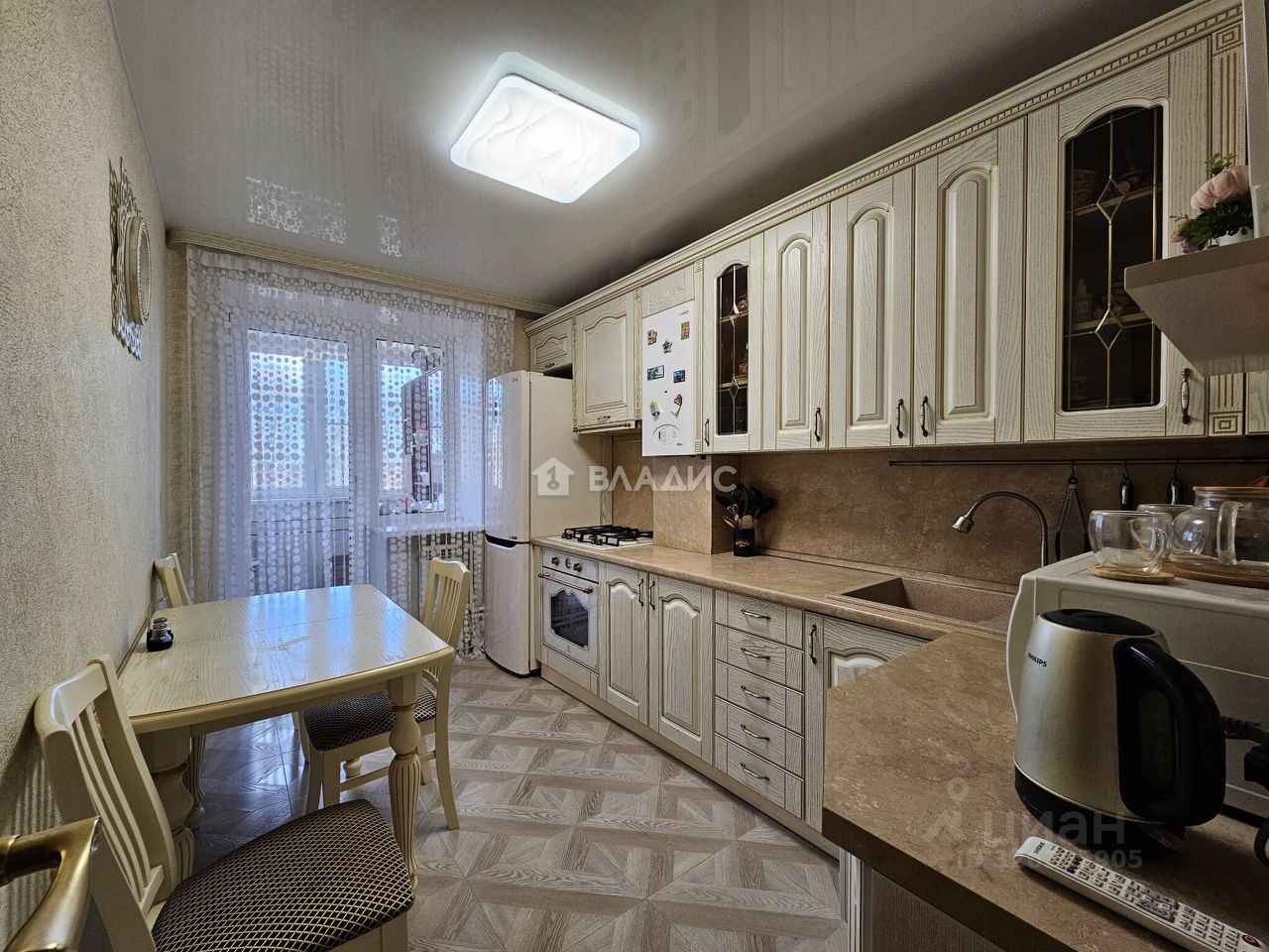 Квартира расположена на пятом этаже пятиэтажного дома. Общая площадь составляет 67,3 кв. м, из которых 43,8 кв. м — жилая площадь. Высота потолков — 2,5 м. Комнаты изолированы, окна выходят на улицу. Квартира продается с мебелью и кухонным гарнитуром с встраиваемой техникой, есть лоджия.