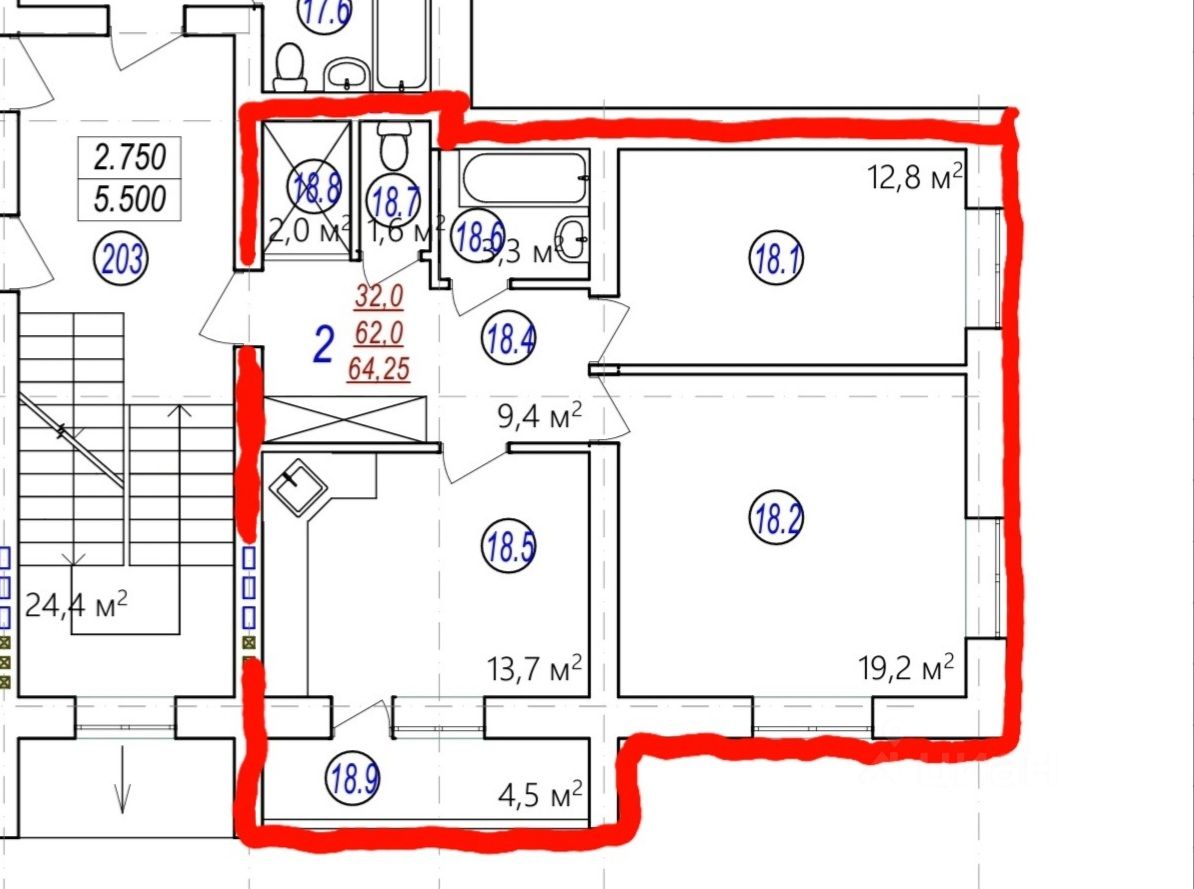 64,25 м²
