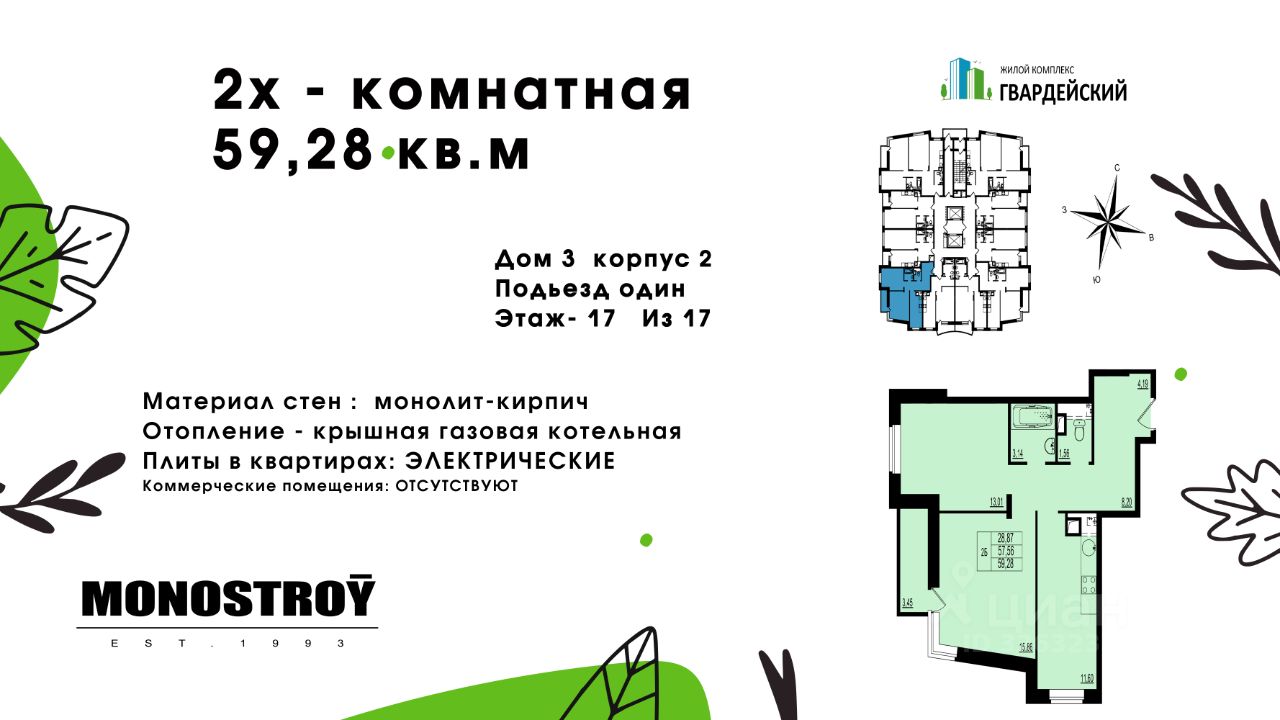 ЖК "Гвардейский" это 17 жилых домов разной этажности, расположенных в мкр. Юрьевец.