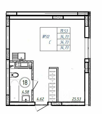 Общая площадь34,7 м²
