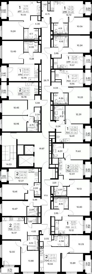 Продается 1-комн. квартира на 11-м этаже в строящемся проекте комфорт-класса Октябрьский. Общая площадь лота составляет 37,87 кв. м, из которых 13,40 кв. м отведено под жилую и 13,94 кв. м под кухонную зону. Номер квартиры - 696.