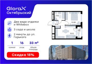 Отличительное преимущество GloraX Октябрьский — видовые квартиры на верхних этажах. Все помещения сдаются уже с предчистовой отделкой. В пакетных предложениях предусмотрена дополнительная возможность установки датчиков протечек для вашей безопасности.