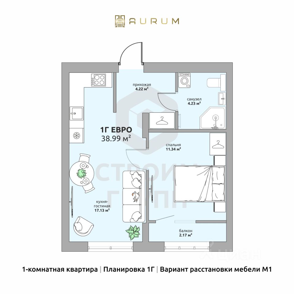 Перед вами однокомнатная квартира евро-планировки в ЖК Аурум. Отличительной особенностью этой планировки являются большая изолированная прихожая с отдельным местом под шкаф-купе, просторная кухня-гостиная и теплая лоджия в спальне. Заходим внутрь и попадаем в изолированную от жилых комнат прихожую. Там мы видим отдельную зону для установки шкафа для хранения верхней одежды. Дверь направо ведет в просторную кухню-гостиную площадью 17 квадратных метров. Пространство легко разделить на зону приготовления пищи с установкой там углового кухонного гарнитуры, столовую и ТВ-зону с большим, комфортным диваном и телевизором. Из общей комнаты проходим в отдельную спальню площадью более 11 квадратных метров. Из нее можно попасть на теплую лоджию - лоджию, которая по сути является частью комнаты и перед сдачей дома будет оснащена радиатором отопления. Также в комнате предусмотрено место под двуспальную кровать и отдельная ниша под шкаф для хранения вещей. Отдельно отметим просторный санузел: в нём легко можно разместить душевую кабину, стиральную машину, раковину и унитаз. Доступны такие способы покупки, как наличные, ипотека от ведущих банков (в т.ч. все программы с субсидиями и господдержка). В цену квартиры сразу входит ремонт в формате White Box с гарантией на все работы!