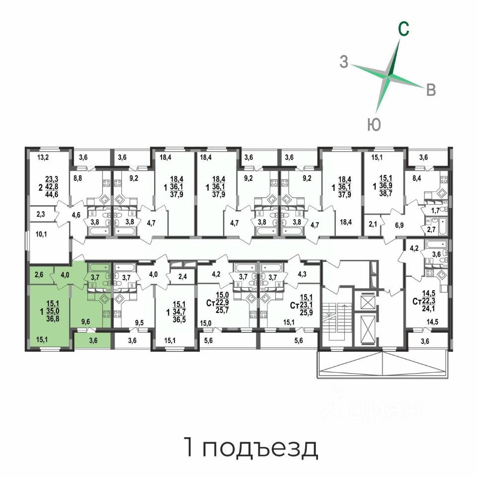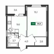 1-комнатная квартира 36,8 кв.м в 1 подъезде ЖК "Сталинградский бульвар 5".