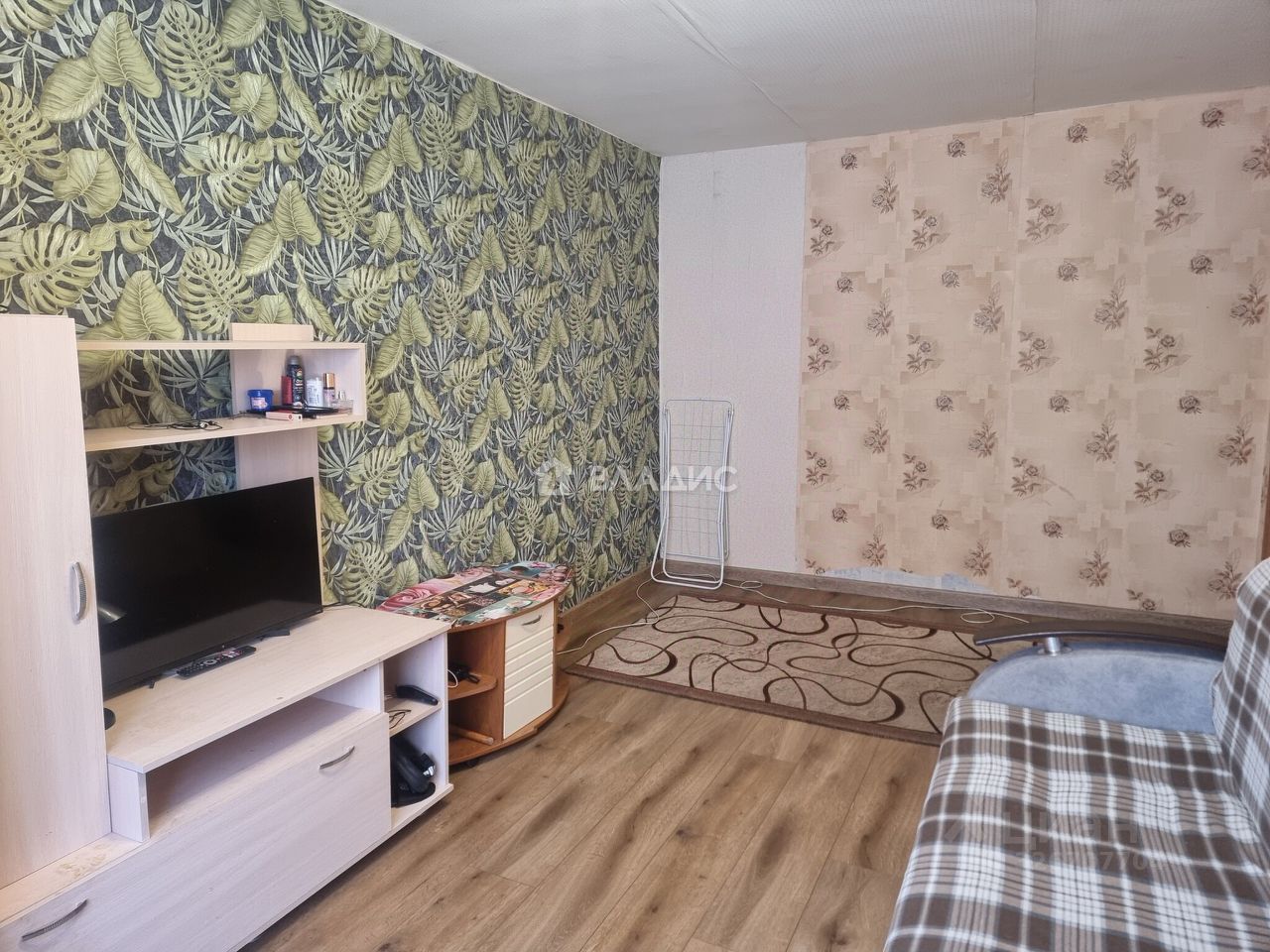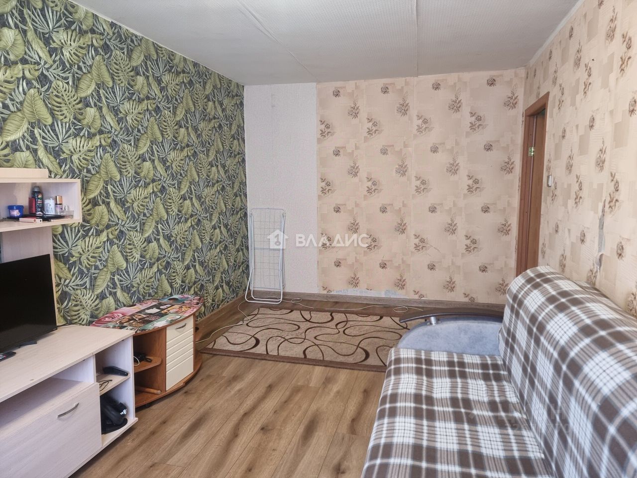 Квартира расположена на первом этаже пятиэтажного панельного дома. Общая площадь составляет 42,4 кв. м, из которых 29 кв. м — жилая площадь, 6 кв. м — кухня.