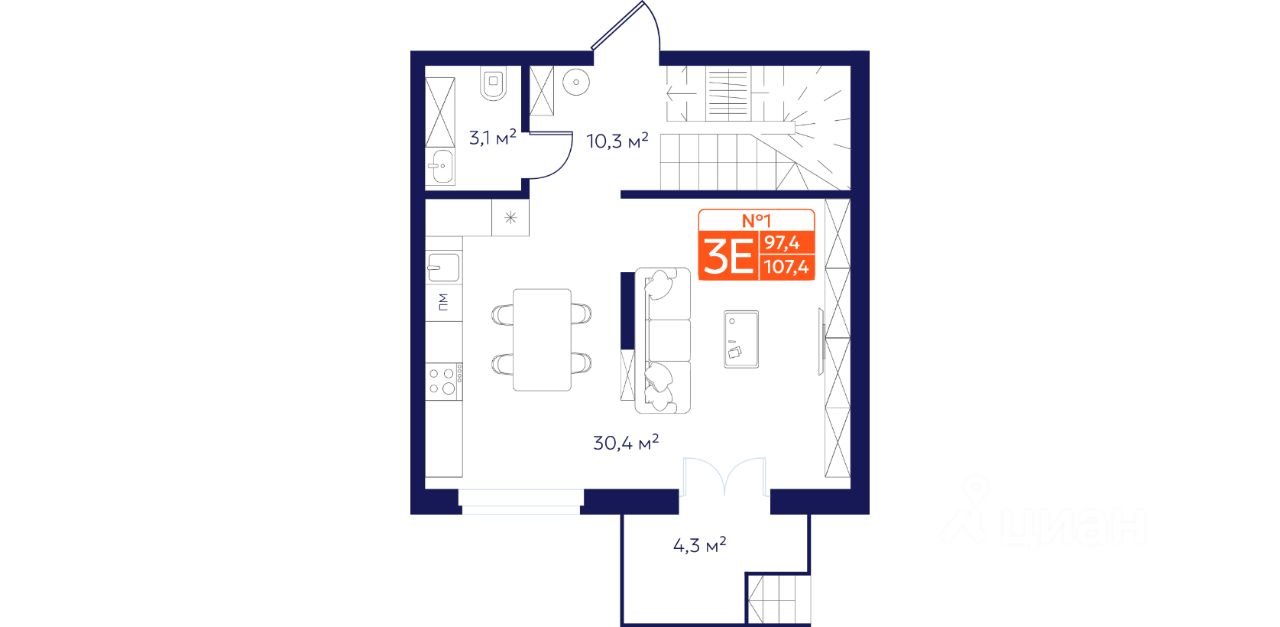 Вы видели что-то подобное ? 2х уровневая квартира в многоквартирном высотном доме общей площадью 99.35 кв.м. в активно-развивающемся Kваpталe Hoвaтopов комфopт-клaccа.