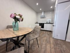 В квартире выполнен качественный современный ремонт, материал напольного покрытия ламинат/керамогранит, кварцвинил, потолки - натяжные с точечным освещением, установлен новый кухонный гарнитур с встраиваемой бытовой техникой, санузел в современном кафеле.