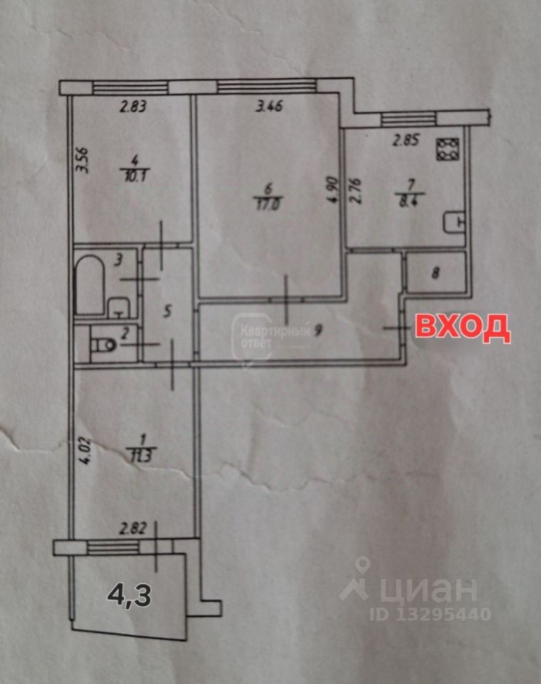 3. Удобная планировка (распашонка), окна выходят на разные стороны света.