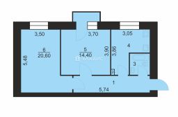 54,6 м²
