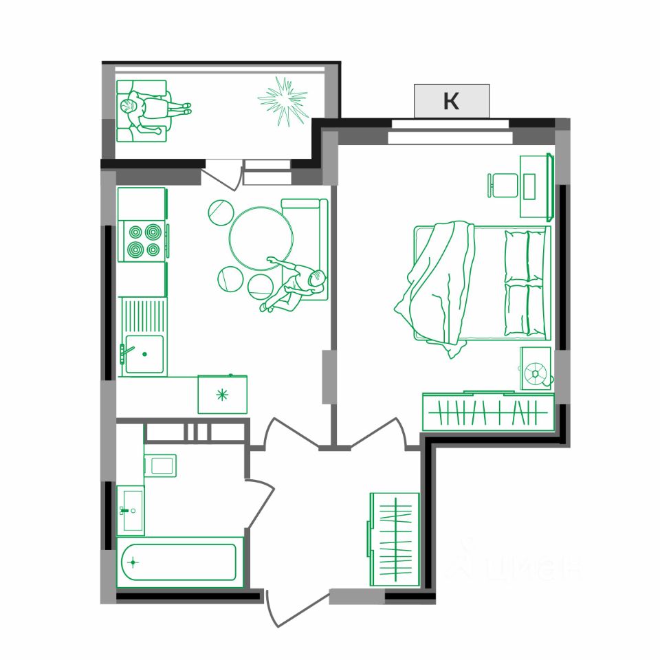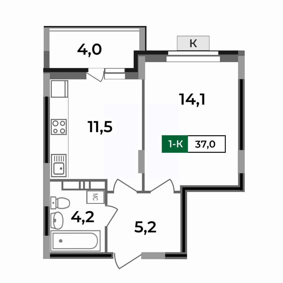 — кухня с выходом на лоджию 4 кв.м