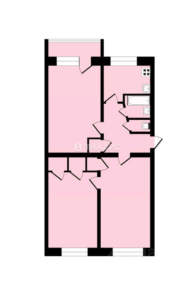 общая площадь 61,3 м² в кирпичном доме 1974 года постройки.