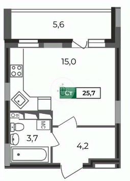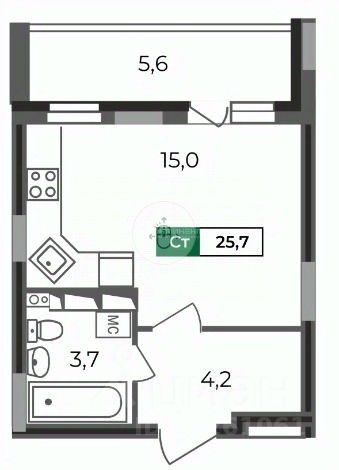 Квартиру-студию 25,7 кв.м. во 2 подъезде ЖК "Сталинградский бульвар 5"