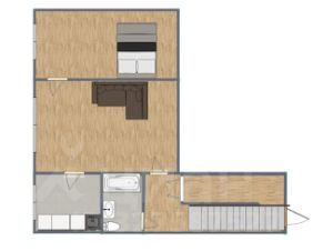 Квартира расположена на цокольном этаже. Окна находятся выше уровня земли, поэтому в помещениях достаточно естественного света