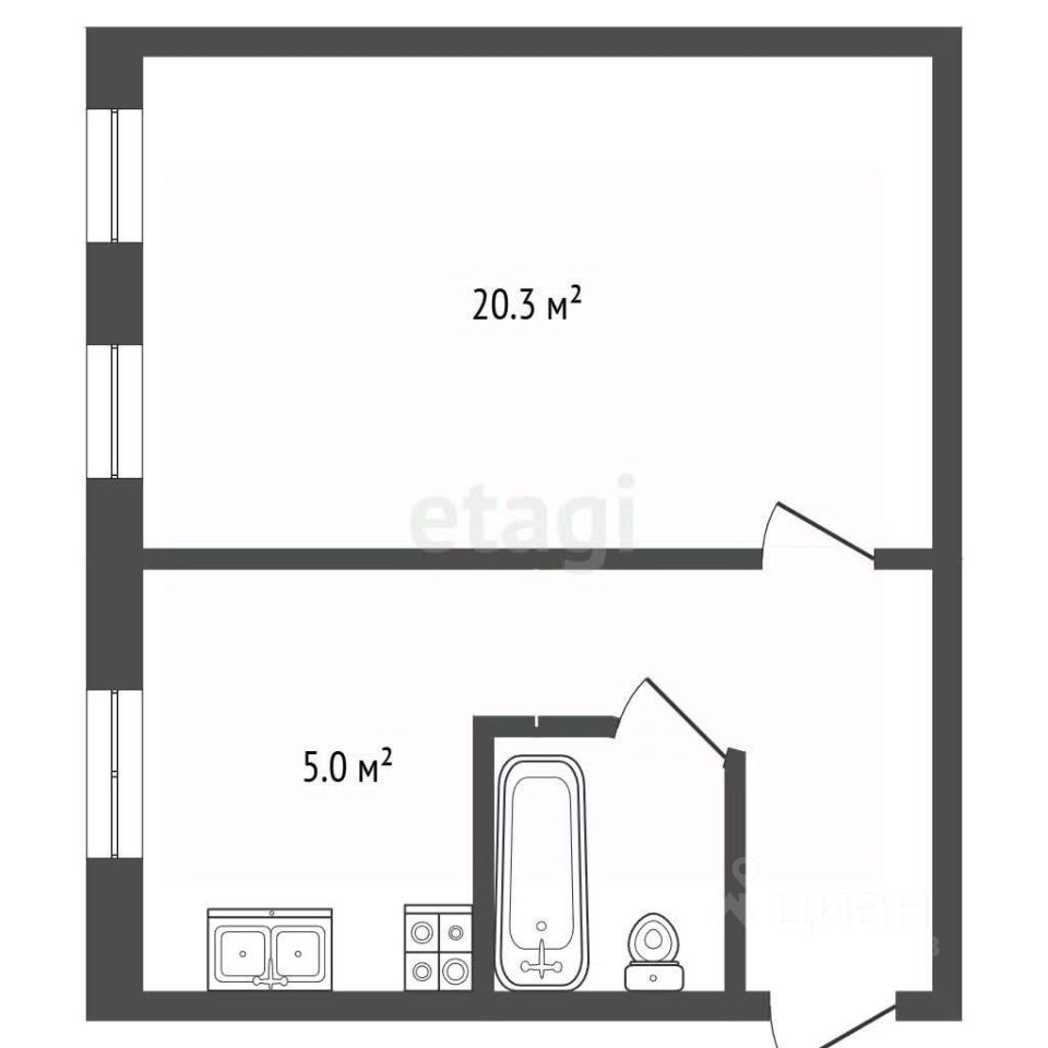 Удобная планировка, большая светлая комната с двумя окнами - 20.3 кв.м