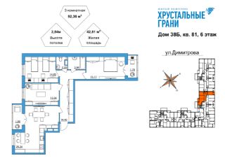 Продаётся 3-комнатная квартира в строящемся доме (Дом 38Б), срок сдачи: IV-кв. 2026, общей площадью 91.95 кв.м., на 6 этаже. Новый жилой комплекс "Хрустальные грани" от застройщика ООО "СЗ Новый век" расположился по адресу: Владимирская область, город Гусь-Хрустальный, улица Димитрова, 38.
