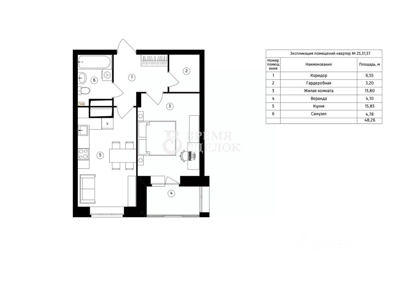 Общая площадь48,53 м²