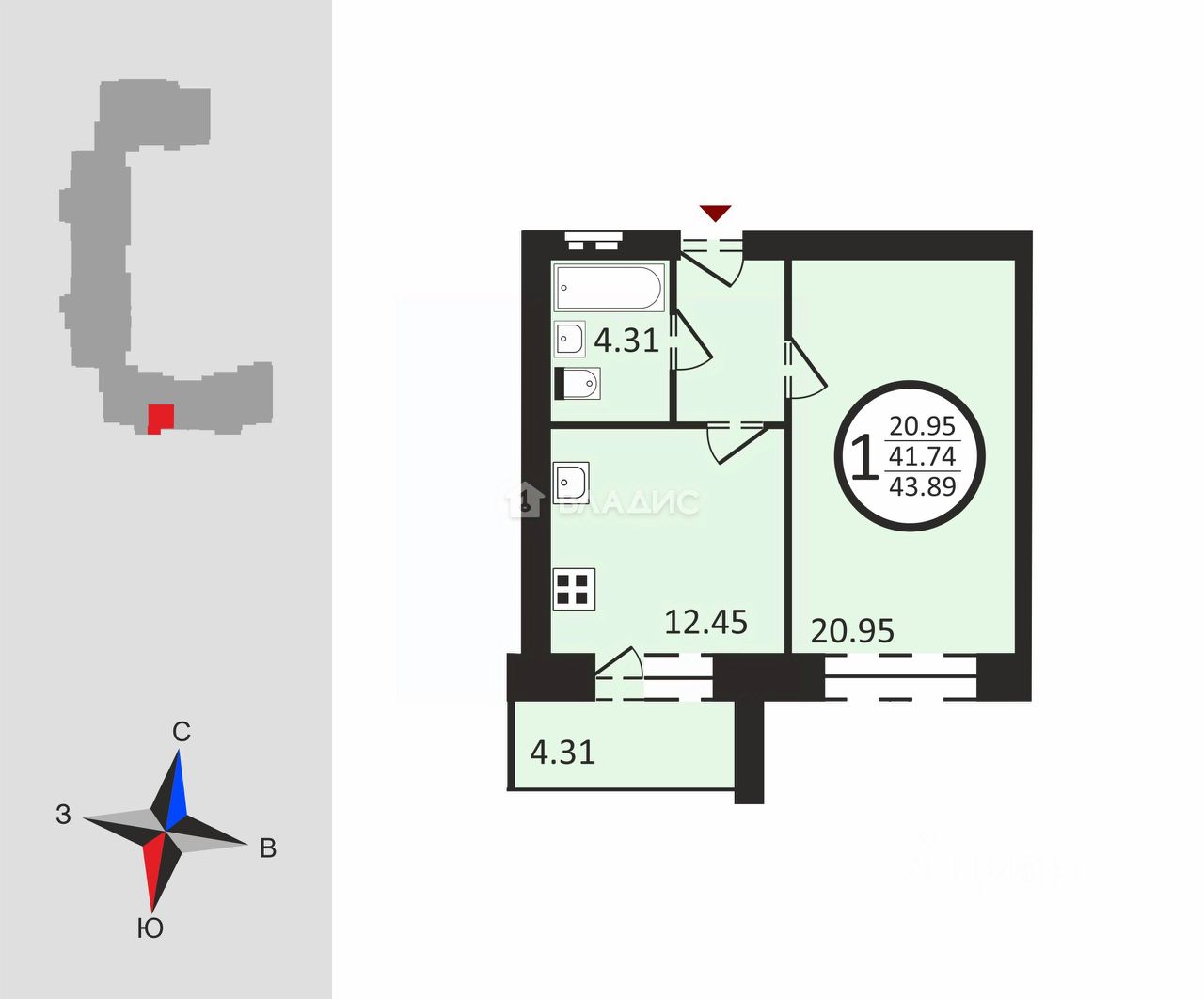 42,4 м²