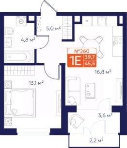 Продается 1-комнатная квартира 260 в Квартале "Новаторов" комфорт-класса.