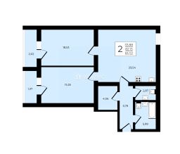 Просторная планировка: общая площадь 82,5 кв. м, жилая — 33,88 кв. м, площадь кухни — 29,54 кв. м. Изолированные комнаты, две лоджии, гардеробная.