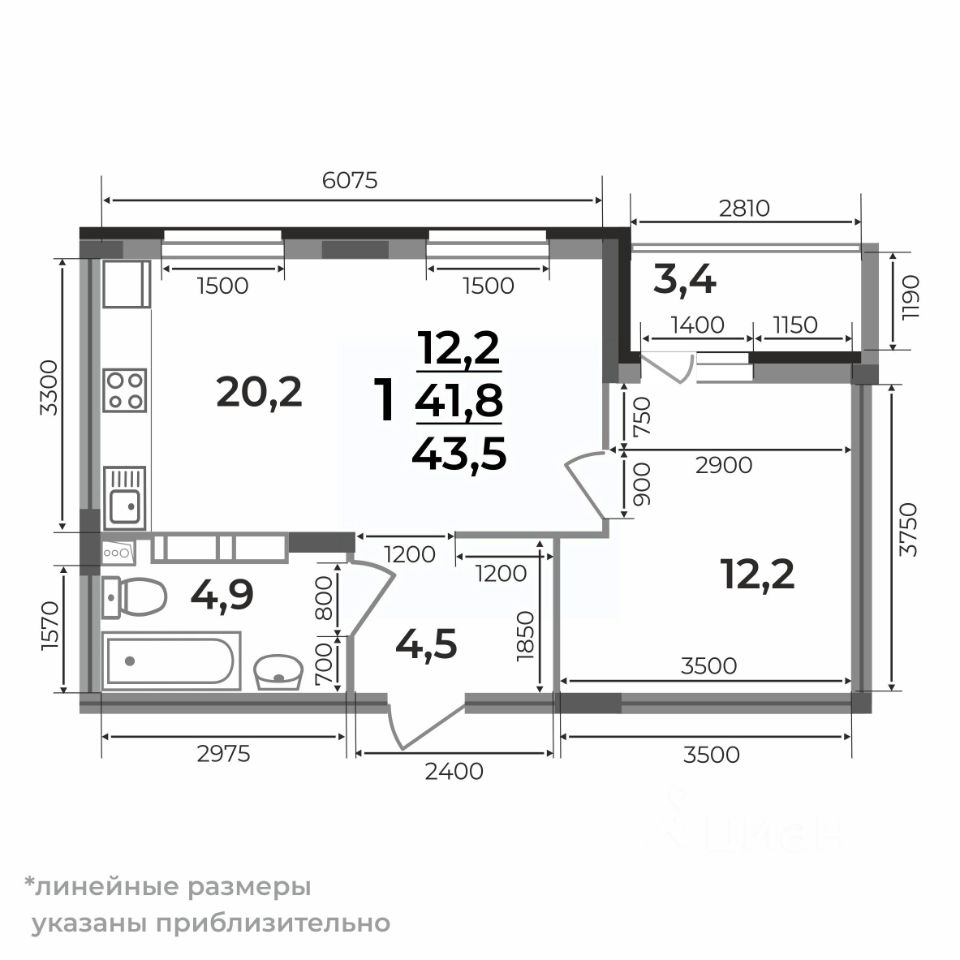 43,5 м²