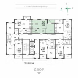Продаётся 2-комнатная квартира в строящемся доме (Дом 1), срок сдачи: IV-кв. 2028, общей площадью 43.5 кв.м., на 2 этаже. Новый жилой комплекс "Сталинградский бульвар 10" от застройщика "СК Континент" расположен по адресу: г. Владимир, Сталинградский бульвар.