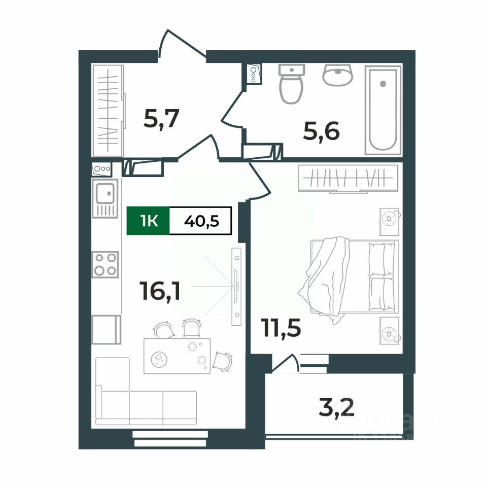 16,1 м²