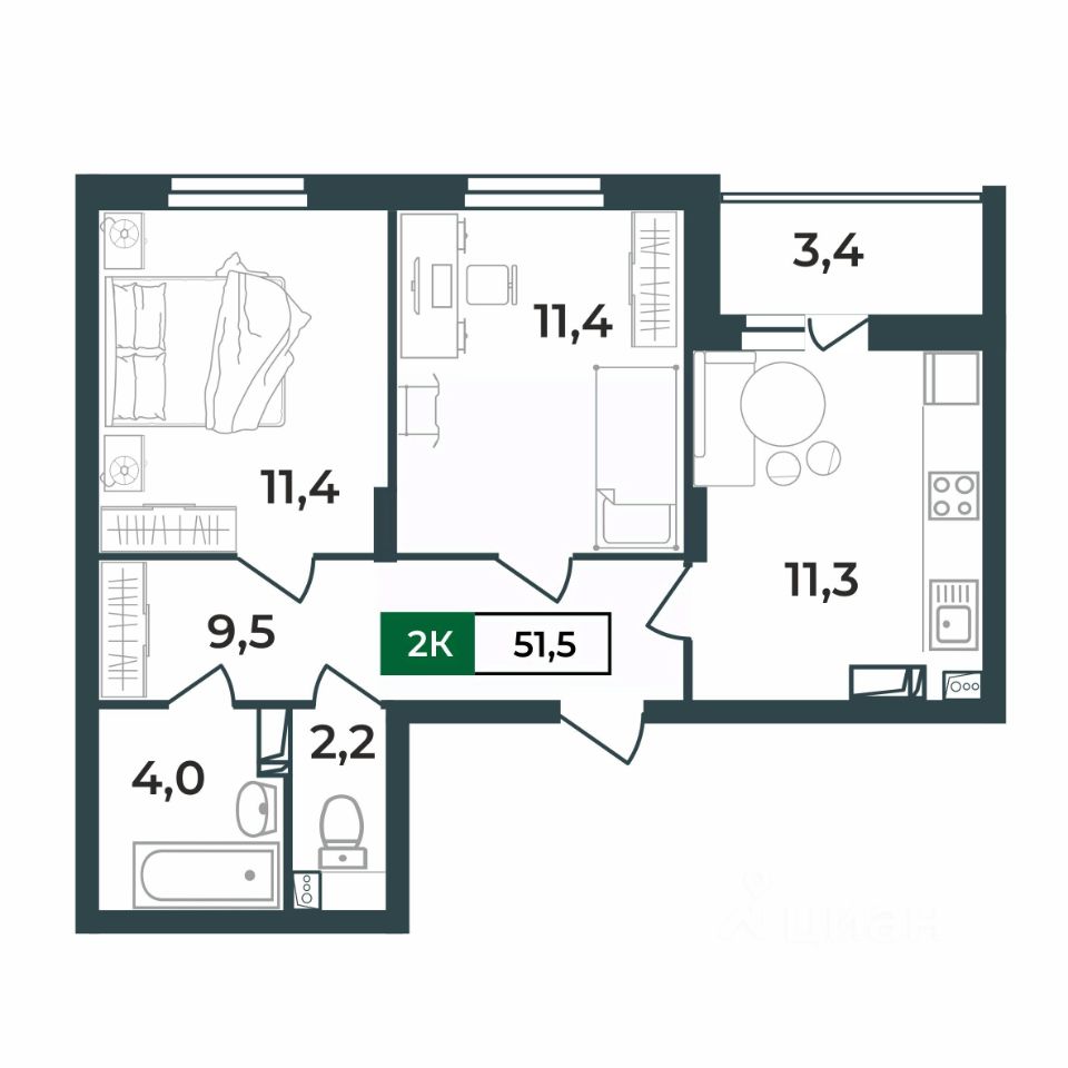 Продаётся 2-комнатная квартира в строящемся доме (Дом 1), срок сдачи: IV-кв. 2028, общей площадью 51.5 кв.м., на 2 этаже. Новый жилой комплекс "Сталинградский бульвар 10" от застройщика "СК Континент" расположен по адресу: г. Владимир, Сталинградский бульвар.
