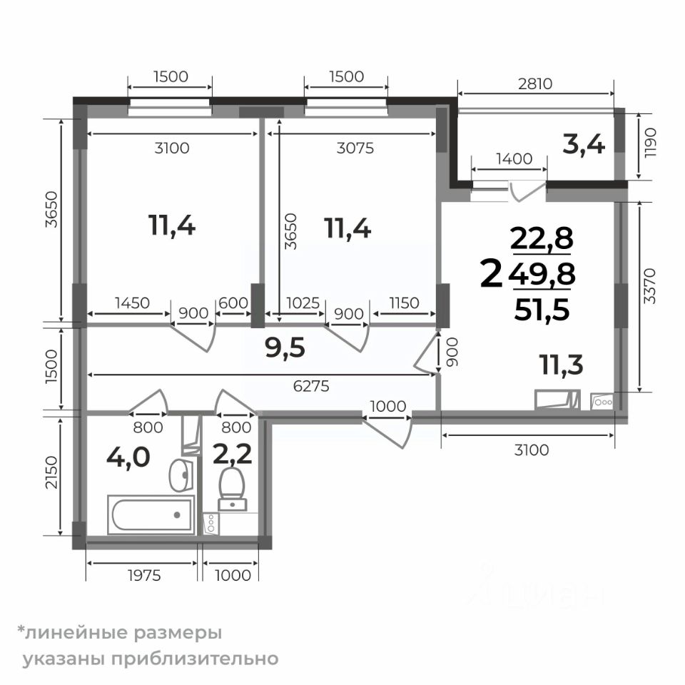 51,5 м²