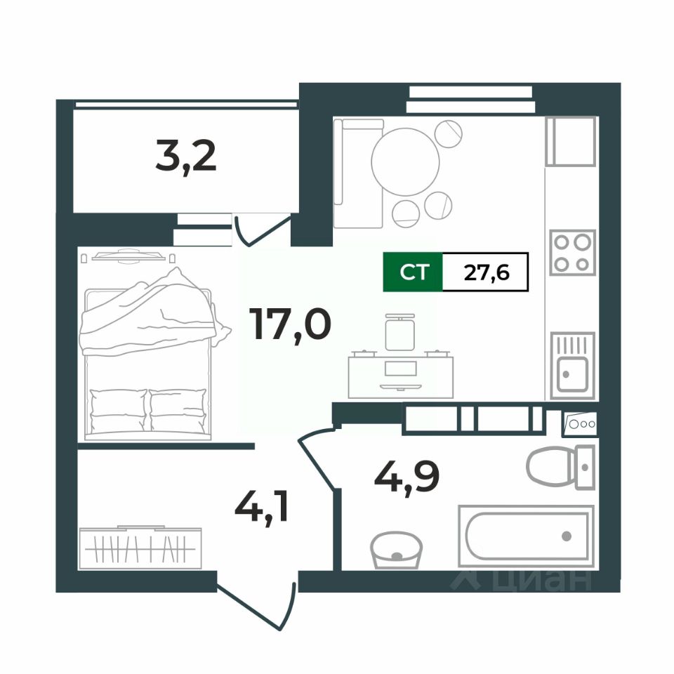 27,6 м²