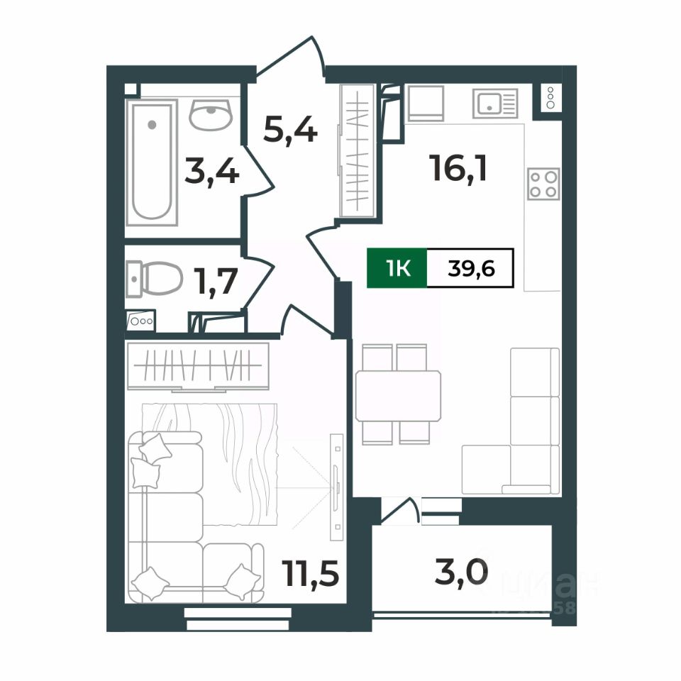 39,6 м²