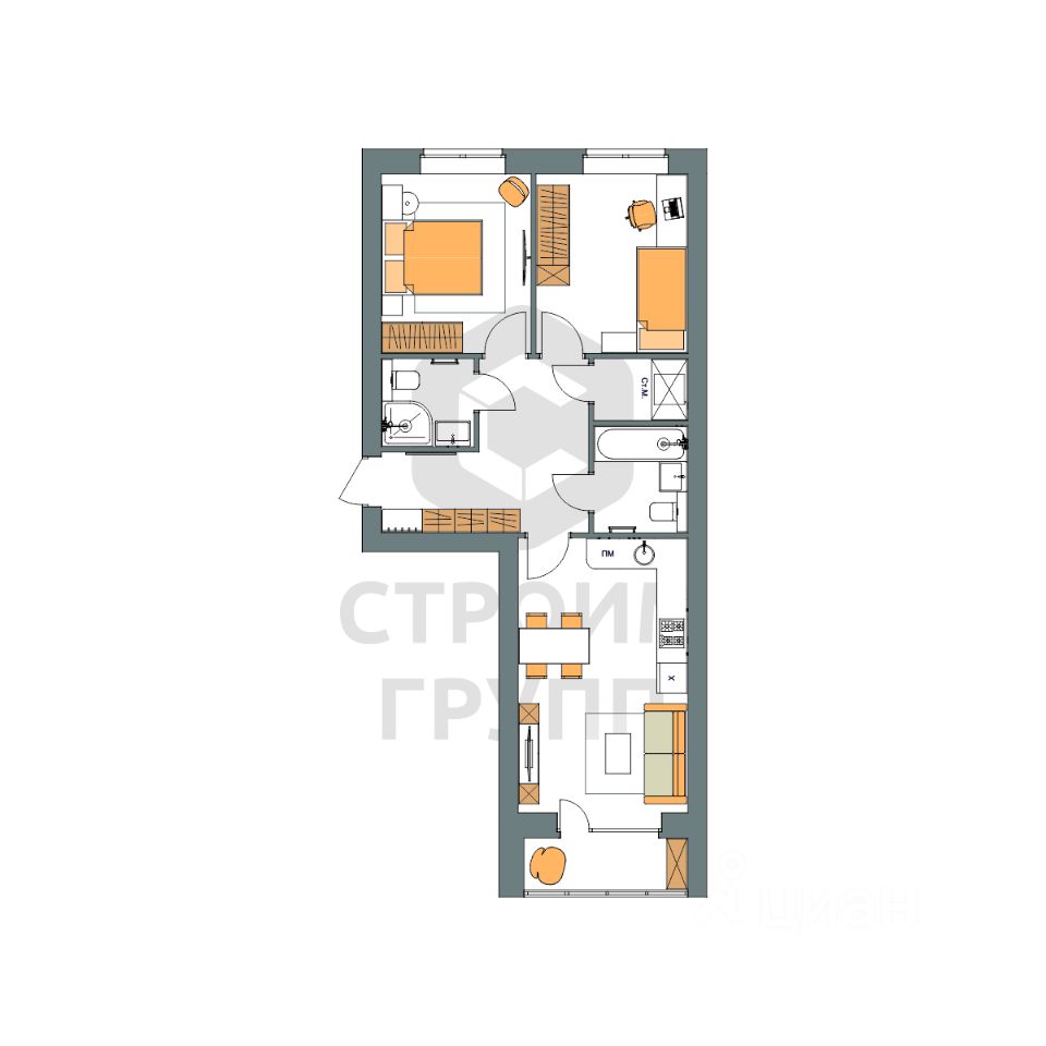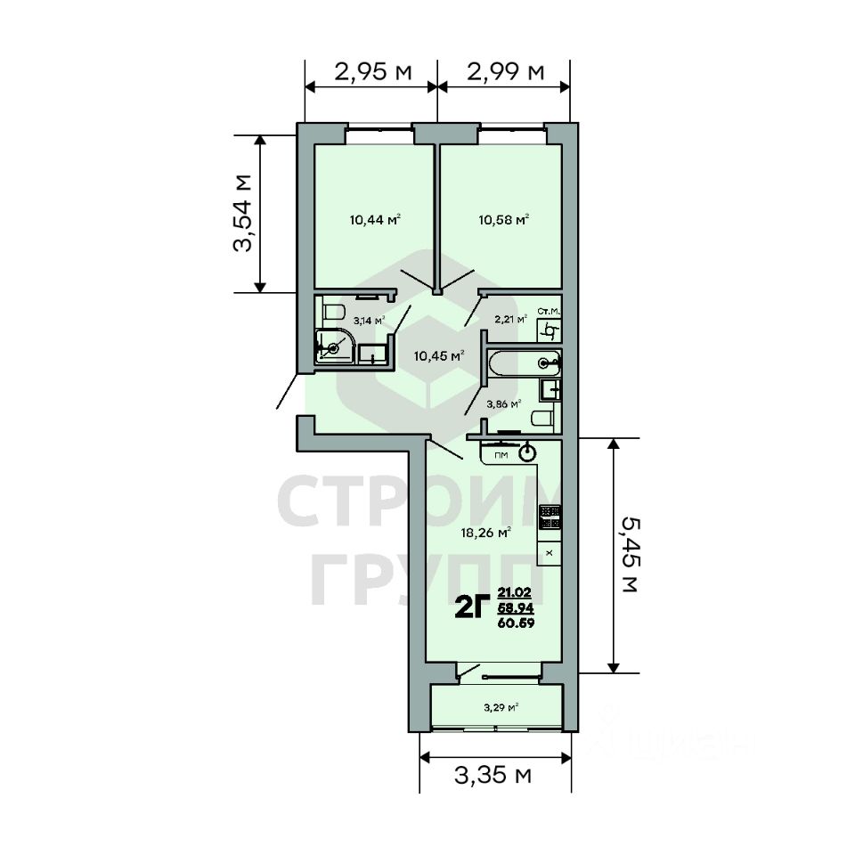 Особенностью этой двухкомнатной квартиры является объединенная с кухней гостиная общей площадью больше 18 квадратных метров! Помещение разделено на зоны для приготовления пищи, где можно установить кухонный гарнитур и большой обеденный стол для всей семьи, и ТВ-зону, где поместится хороший просторный диван. Из кухни имеется выход на просторную лоджию площадью 3,3 квадратных метра. При сдаче дома лоджия будет остеклена! При такой планировке совмещенной кухни и гостиной, неоспоримым преимуществом этой двухкомнатной квартиры являются две отдельные комнаты. Одну из них можно использовать под спальную комнату, где можно установить широкую кровать или раскладной диван и вместительный шкаф для одежды. Вторую комнату можно использовать в качестве детской или кабинета. Интересным и полезным решением в этой двухкомнатной квартире стали два полноценных санузла! В первом предусмотрено место для ванной, во втором для душевой кабины. Для семьи с детьми - очень актуальное решение. Обратите внимание - рядом с большим санузлом есть отдельное помещение площадью 2,2 квадратных метра, которое можно использовать в качестве постирочной комнаты или гардероба. Просторная прихожая является непроходной. Изолированность прихожей позволяет держать в чистоте остальные помещения квартиры грязь с улицы не будет разноситься по комнатам. Доступны такие способы покупки, как наличные, ипотека от ведущих банков (в т.ч. все программы с субсидиями и господдержка), ипотека со снижением ставки за счёт застройщика, рассрочка до 2 лет напрямую от застройщика. В цену квартиры сразу входит ремонт в формате White Box с гарантией на все работы!
