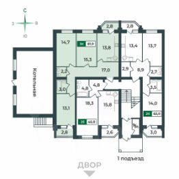 Продаётся 3-комнатная квартира в строящемся доме (Дом 1), срок сдачи: II-кв. 2029, общей площадью 81.9 кв.м., на 1 этаже. Новый жилой комплекс "Парадный-2 в Славном" от застройщика "СК Континент" расположен по адресу: г. Ковров, аллея Победителей.
