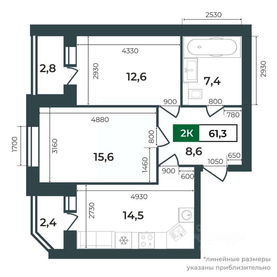 61,3 м²