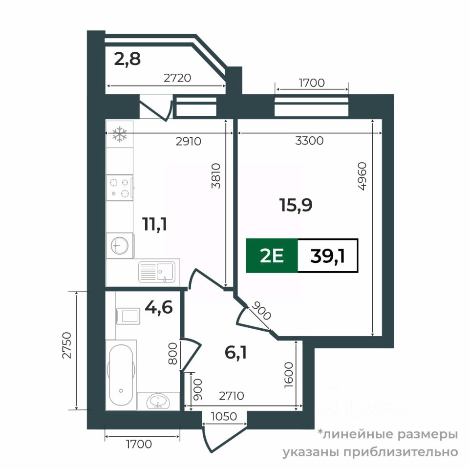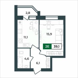 39,1 м²