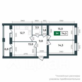74,3 м²