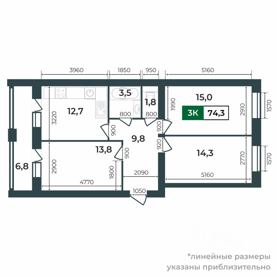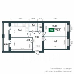 74,3 м²