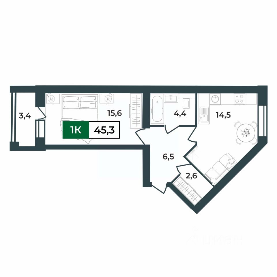 15,6 м²