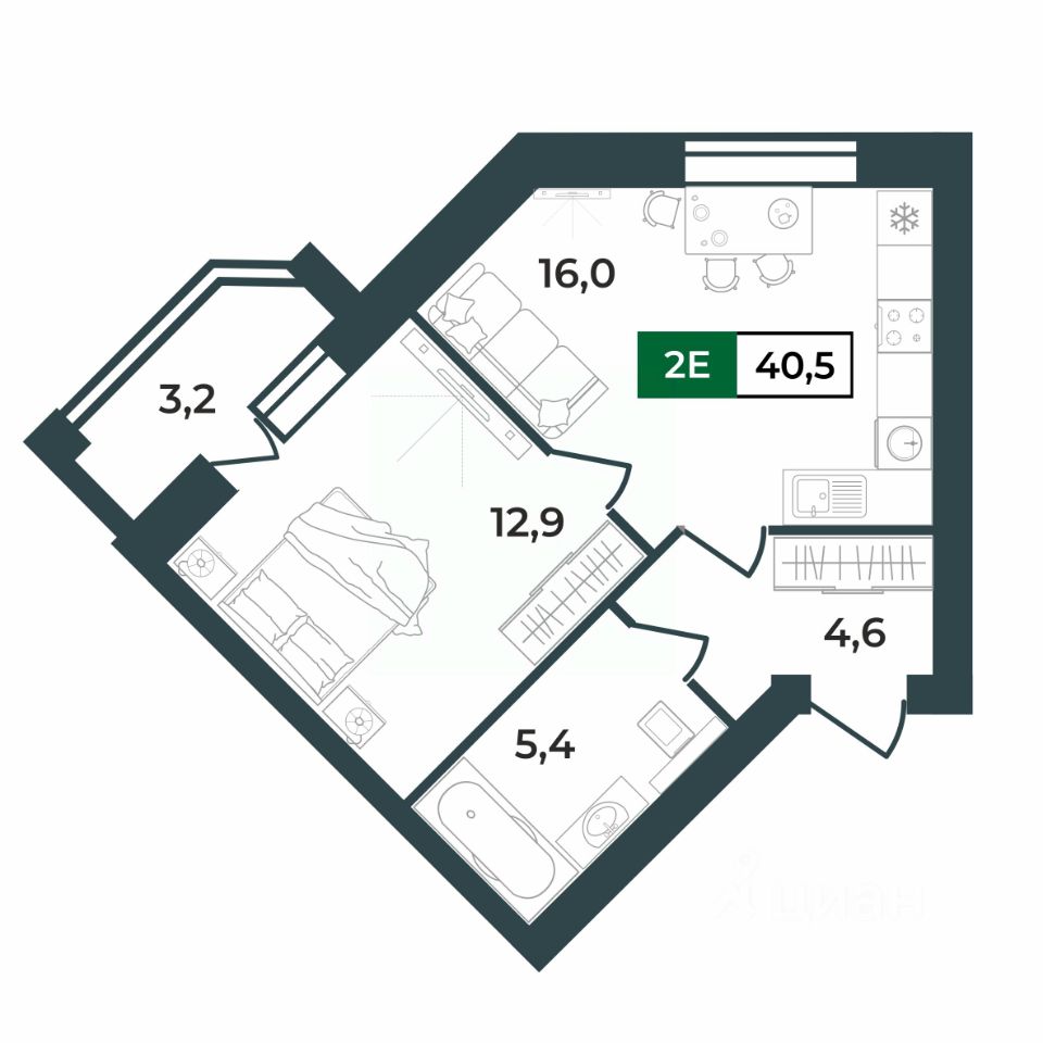 40,5 м²